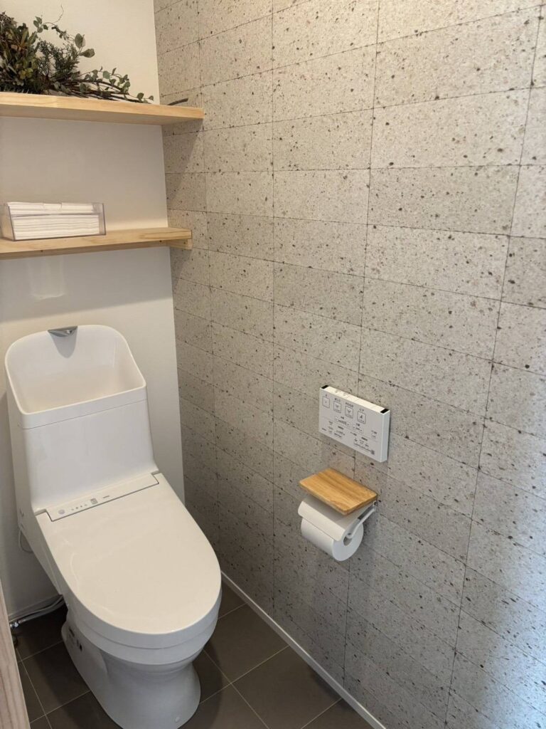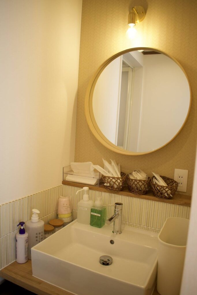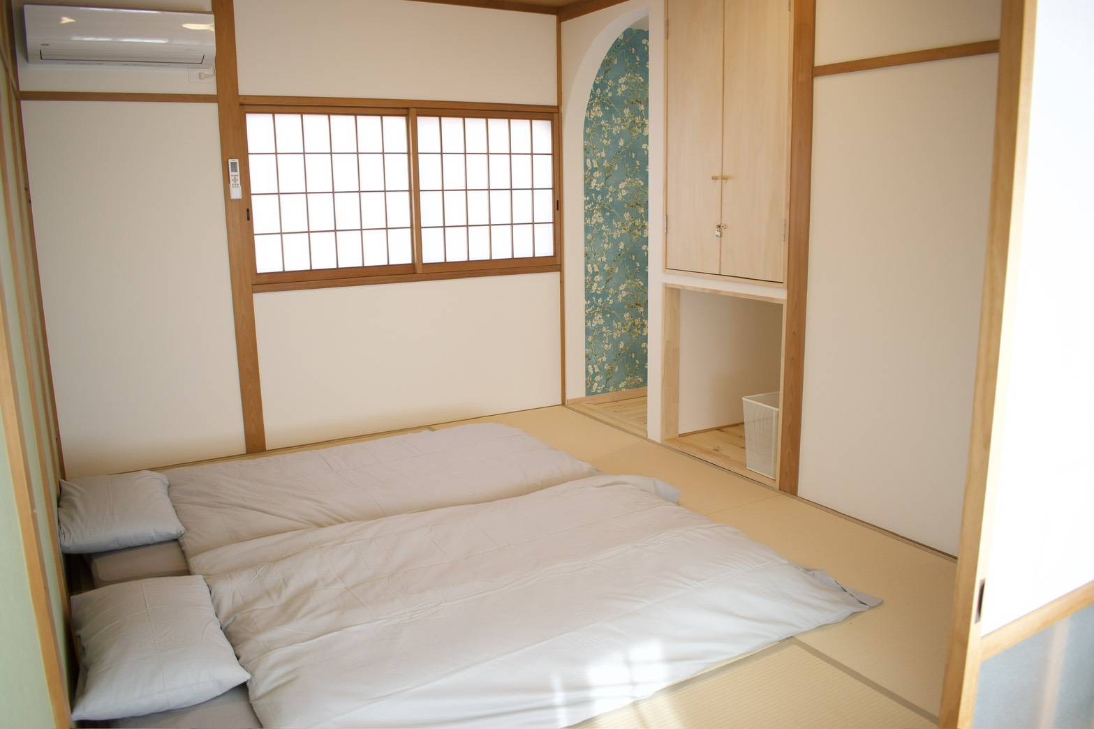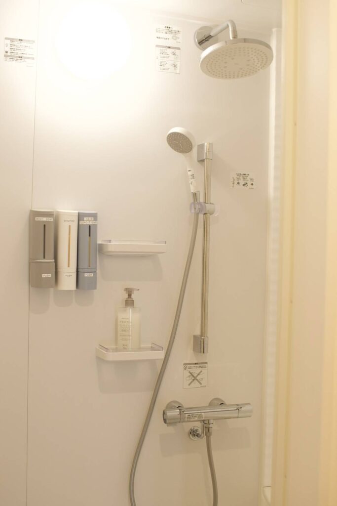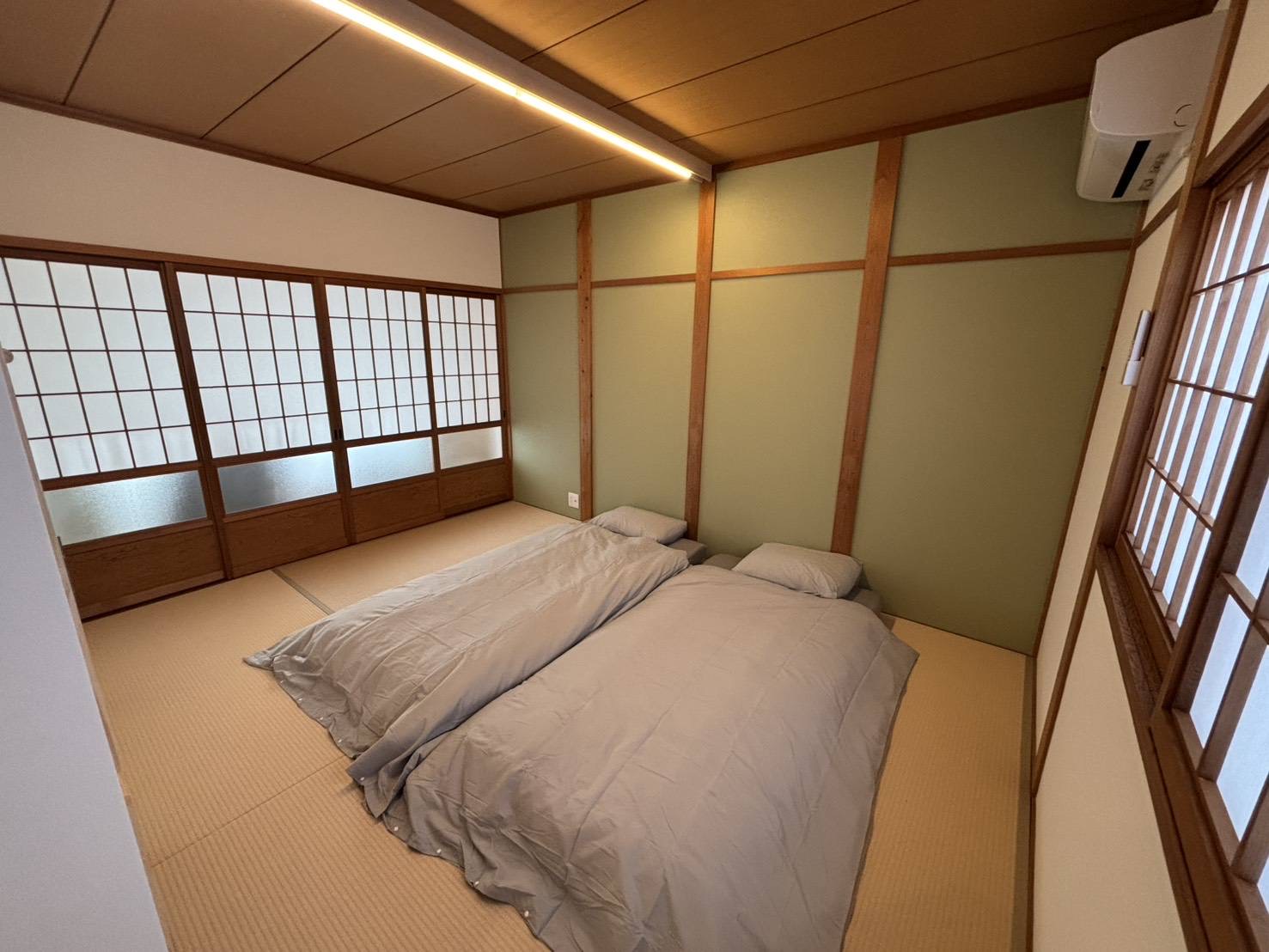 シャワールーム(お風呂無し)、洗浄機付きトイレ(2カ所)、洗面台(2カ所)、ベッド無し(布団)